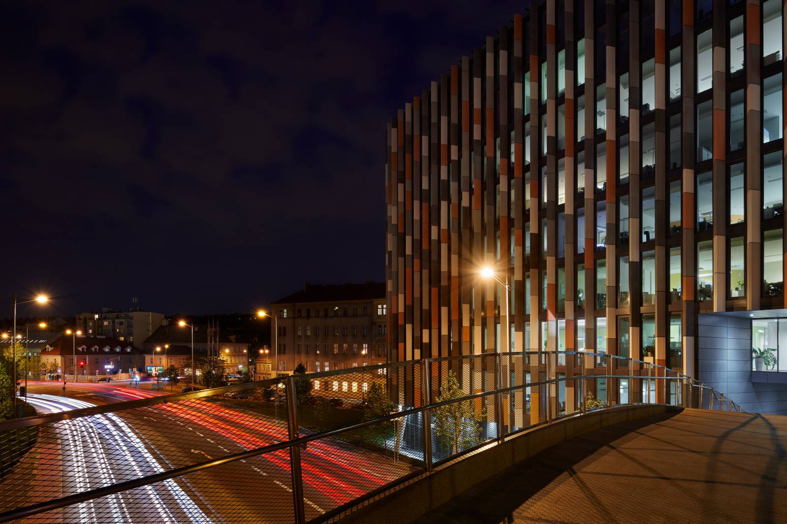 Az épület színvonalasan felszerelt háttér létesítményekkel rendelkezik, étkezési lehetőségekkel, társalgókkal és kávézókkal. Az épületben a Kooperativa és a Česká podnikatelská poisťovna 1200 alkalmazottja dolgozik.Az épületre 1570 db C-80 zsaluziát szállítottunk.
